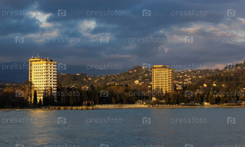 Морской пейзаж с видом на побережье Сухуми. Абхазия