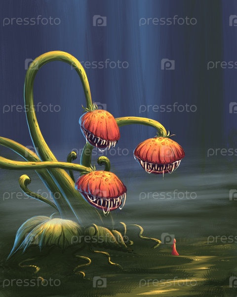 Огромное фэнтезийное растение с тремя головками