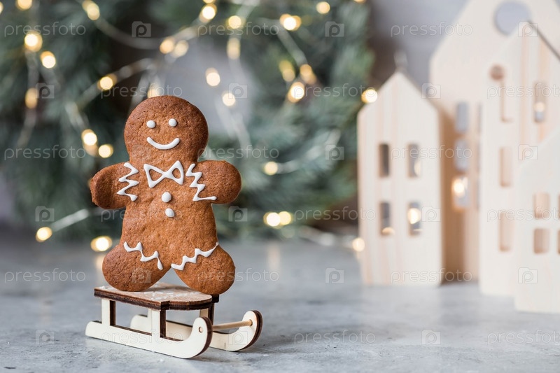 Рождественские пряники домашнего приготовления в сахарной пудре. Вкусные пряники на фоне боке елочных огней. Свежеиспеченные рождественские пряники
