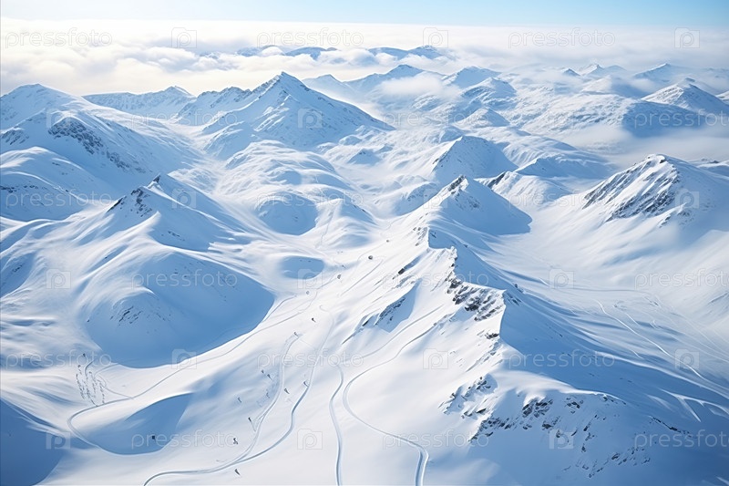 Очаровательные зимние горы. Величественные заснеженные вершины в безмятежном замерзшем пейзаже