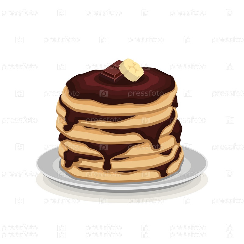 Блинчики с шоколадом и бананом на тарелке на белом фоне