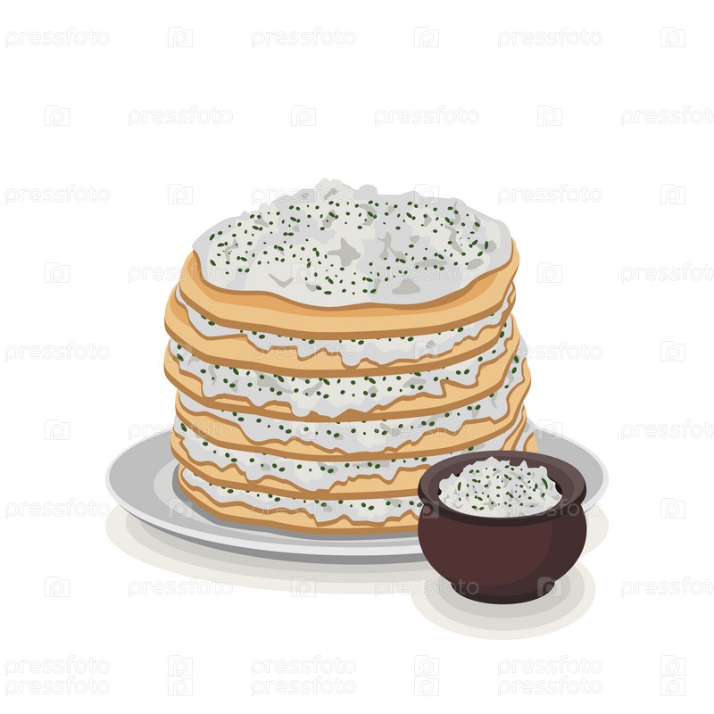 Блинчики с творогом, зеленью на тарелке на белом фоне