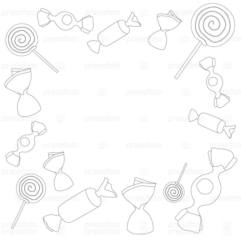 Раскраска для детей с набором сладостей - шоколада, леденцов - линии на белом фоне