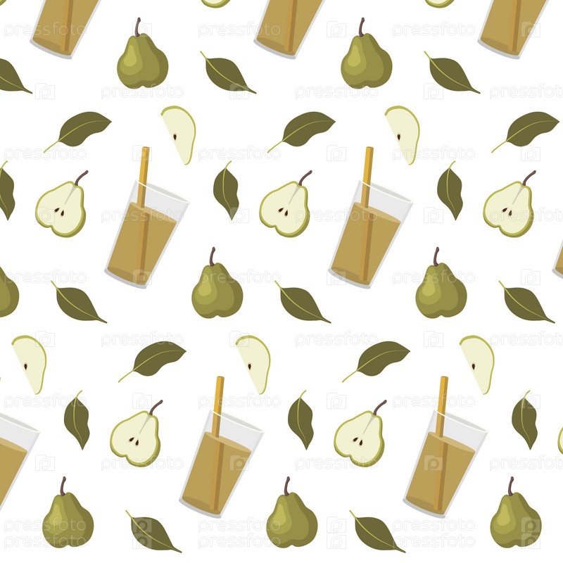 Веселый узор с грушевым соком, ломтиками груши и листьями