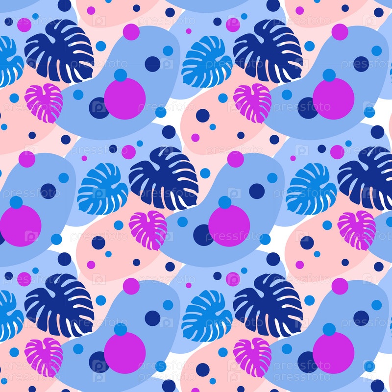 Узор с монстерой, кругами и абстрактными гладкими формами