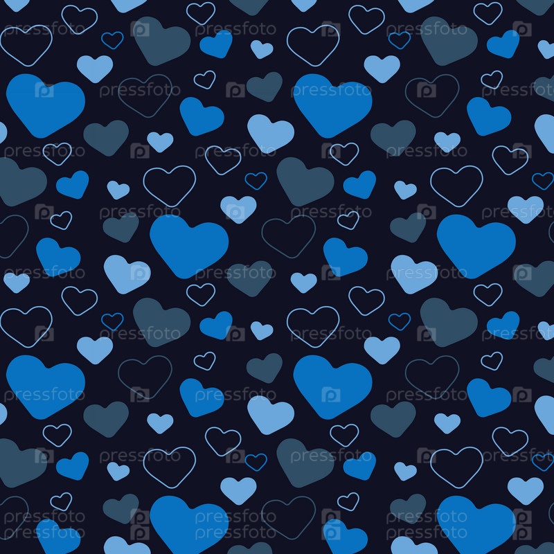 Узор с сердечками разного цвета, только с контуром и только с заливкой на темно-синем фоне
