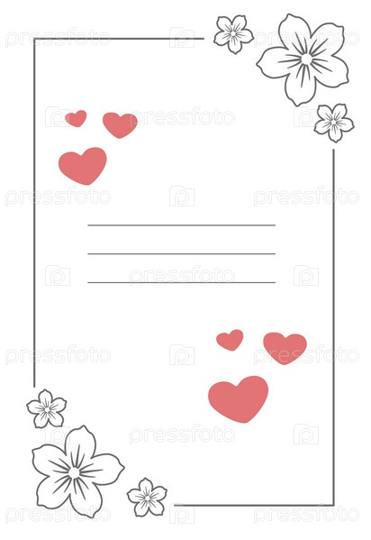 Прямоугольная открытка с местом для текста с контурными цветами на белом фоне