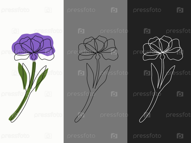 Цветок однолинейный, с пятнами, с черно-белым контуром