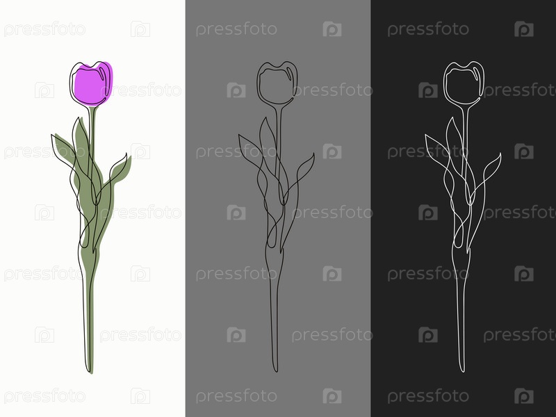 Тюльпан в одну линию, с пятнами, с черно-белым контуром