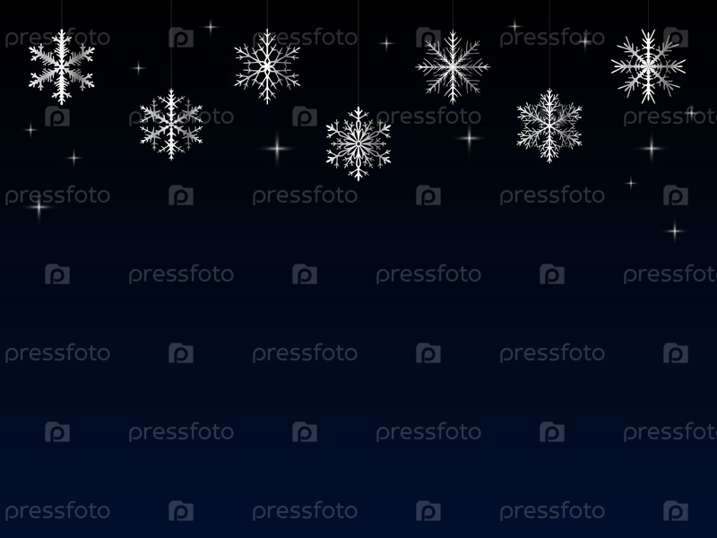 Фон с серебряными снежинками, звездами со свободным пространством внизу