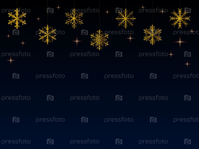 Фон с золотыми снежинками, звездами со свободным пространством внизу