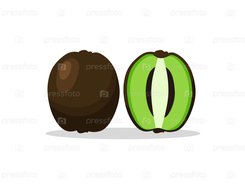 Целый и разрезанный пополам киви с тенью на белом фоне