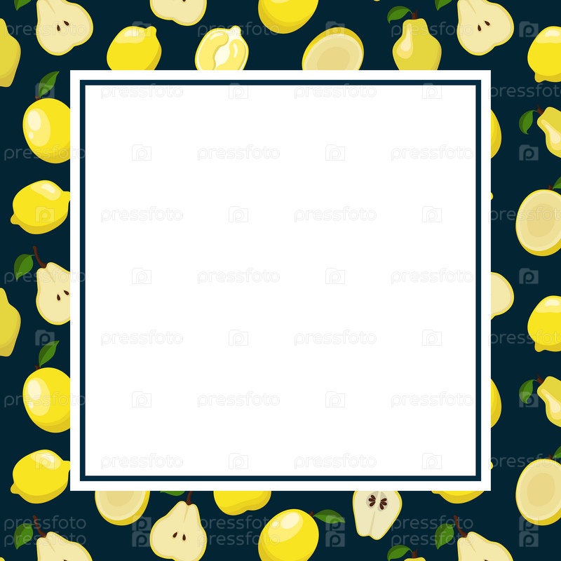 Квадратный фон для поста, плакат с пустым белым центром для текста или фотографии, рамка с желтыми фруктами по краям