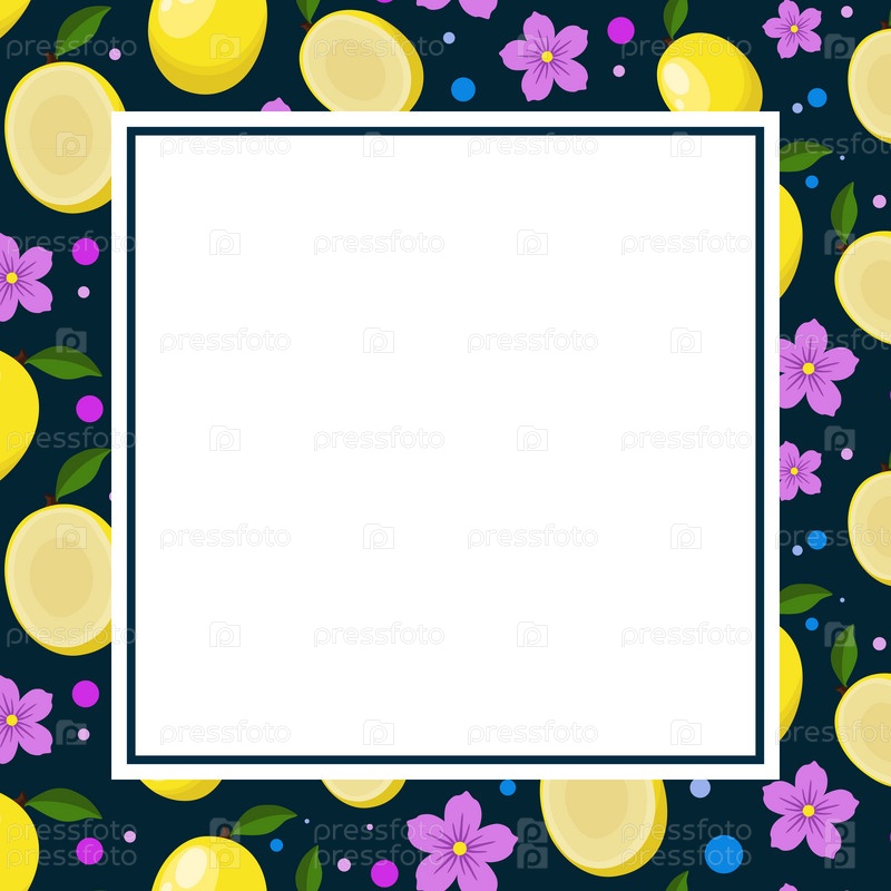 Квадратный столб с пустой серединой, по краям рамка с фруктами, желтыми манго, розовыми цветами, маленькими кружочками