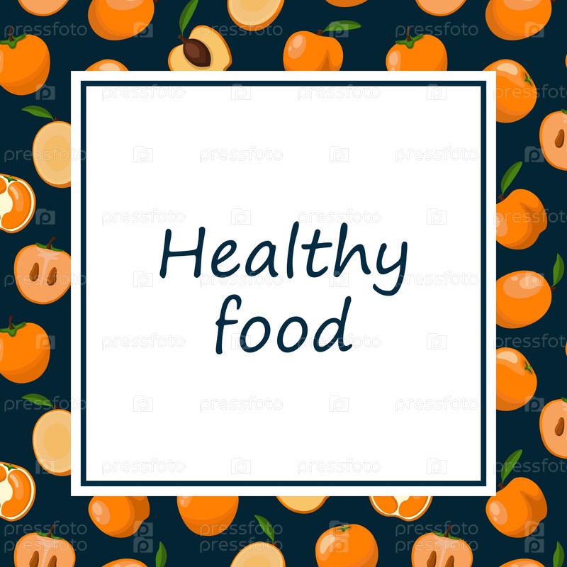 Квадратный столб, плакат с надписью «Здоровое питание» в центре, рамка с различными оранжевыми фруктами по краям