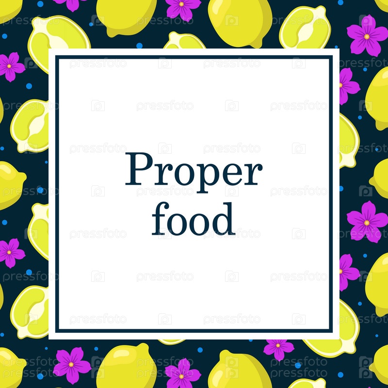 Квадратный столб, плакат с надписью Right Food Incenter, рама со фруктами, желтыми лимонами, розовыми цветами, кругами