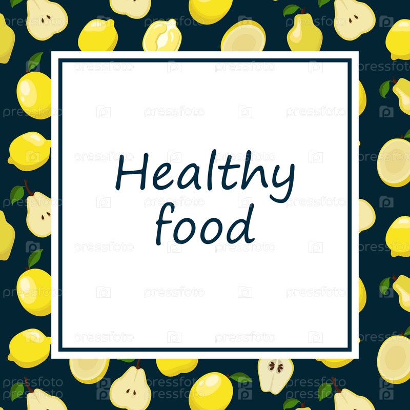 Квадратный столб, плакат с надписью «Здоровое питание» в центре, рамка с желтыми фруктами по краям