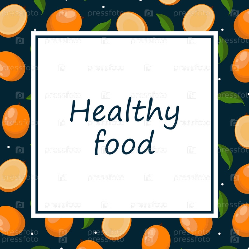 Квадратный столб, плакат с надписью «Здоровое питание» в центре, по краям рамки с оранжевыми плодами манго