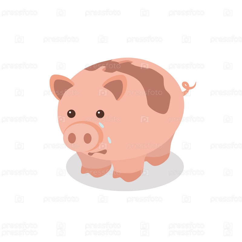 Копилка розовая круглая минималистичная грустная с большой трещиной, переломом - плач, расстроенность. На белом фоне