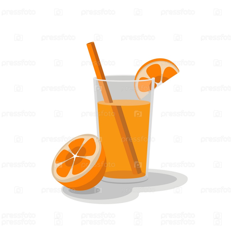 Апельсиновый сок в стакане с апельсином на белом фоне