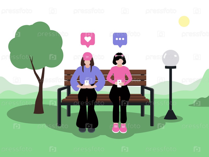 Летом две девушки сидят в телефонах днем