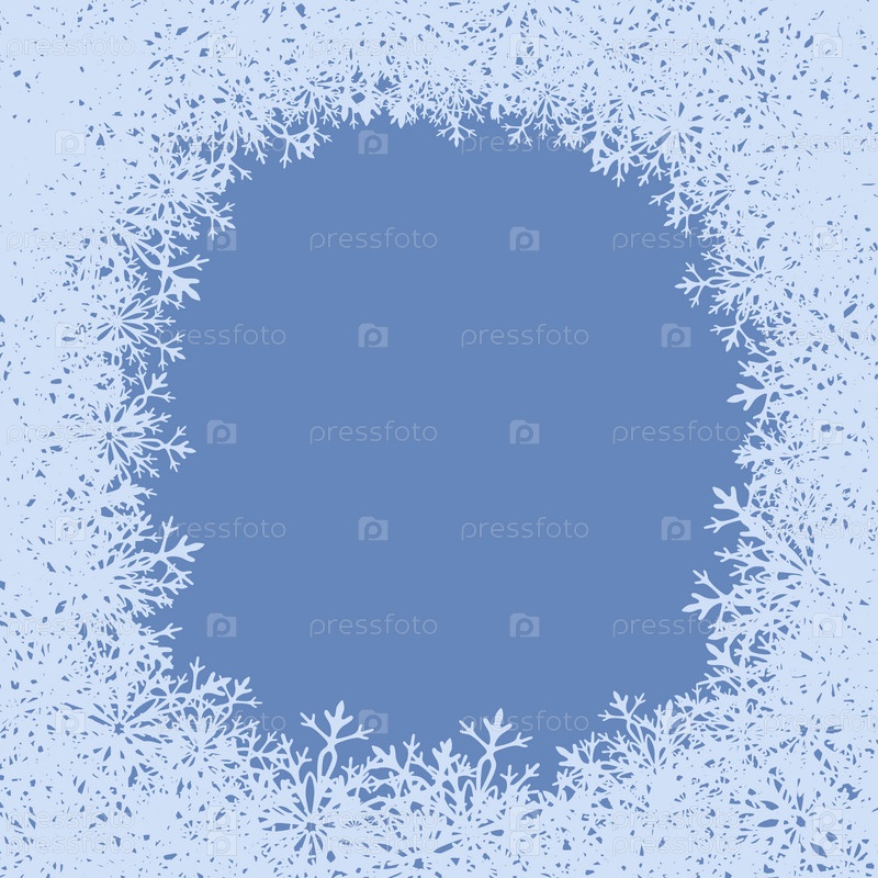 Светлый квадратный фон с толстым количеством снежинок, с пустым центром