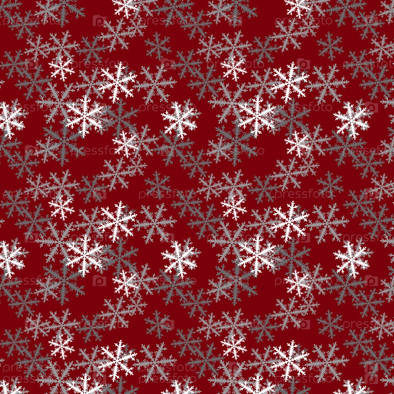 Бесшовный рождественский узор с белыми, серыми красивыми сложными снежинками на красном фоне