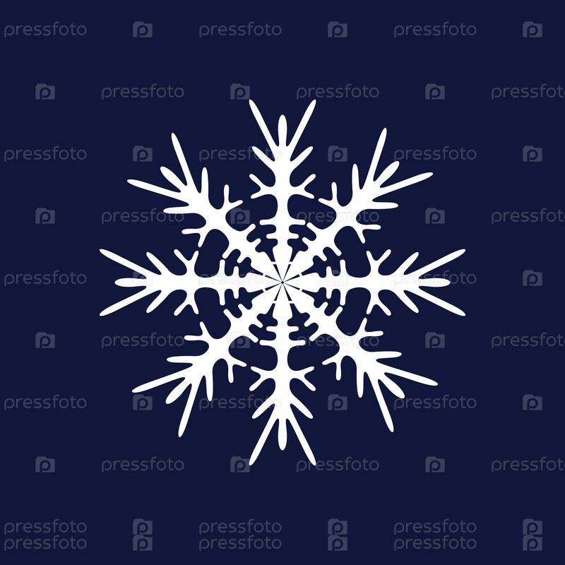 Снежинка белая ажурная симметричная на синем фоне