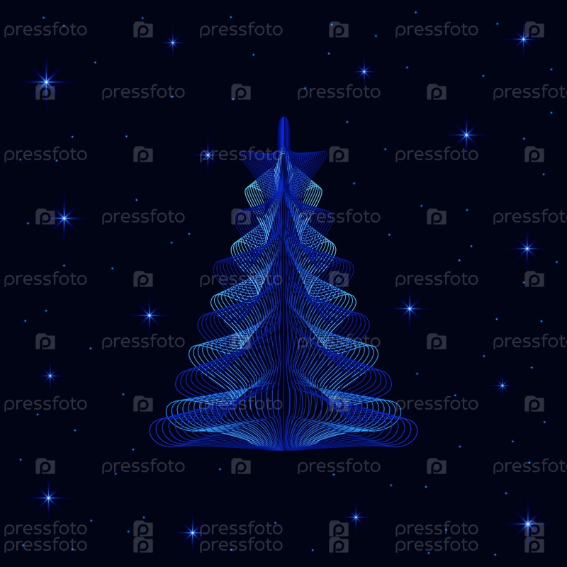 Рождественская елка современная гладкая необычная красивая симметричная на темном фоне со звездами