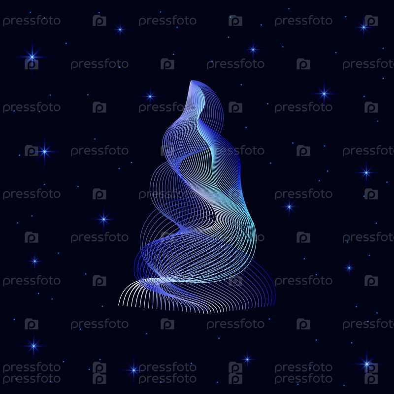 Рождественская елка современная необычная красивая изогнутая на темном фоне со звездами