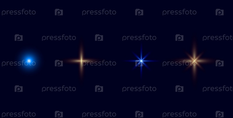 Набор из четырех разных сияющих звезд, холодных и теплых