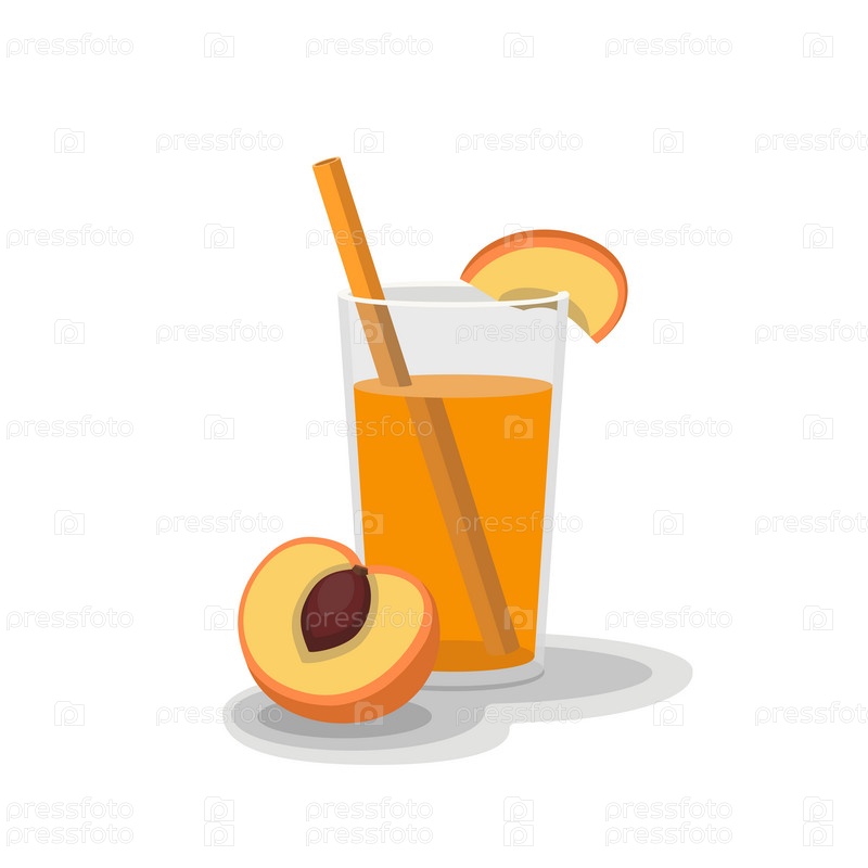 Персиковый сок в стакане с кусочком персика на белом фоне