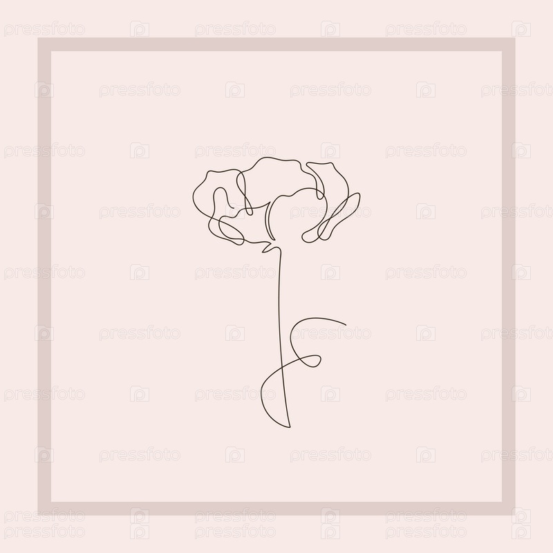 Однолинейный цветок в квадратной розовой рамке на светлом фоне