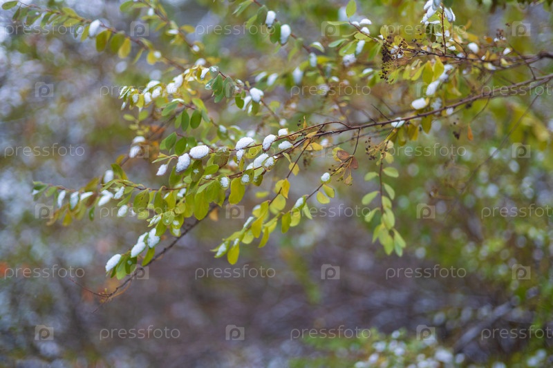Первый снег на листьях