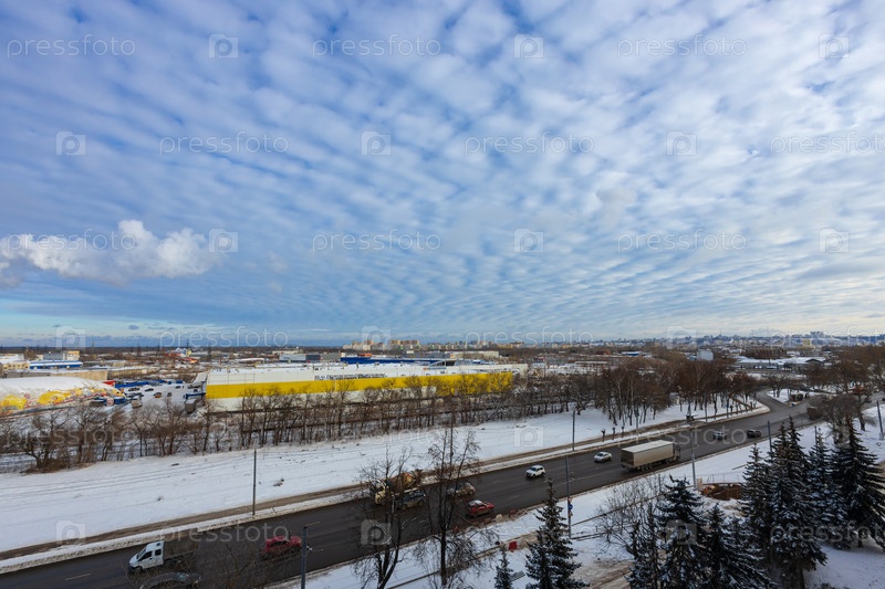 Городской пейзаж с красивым небом снятый с девятого этажа