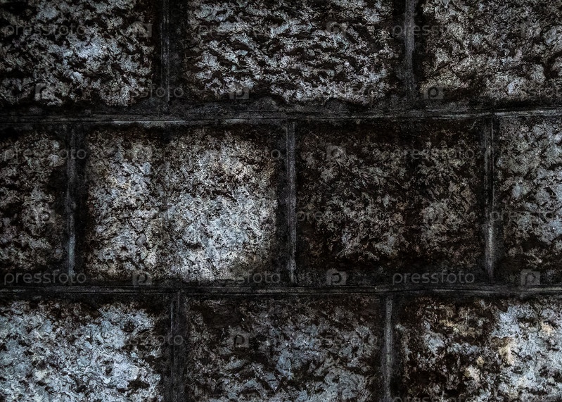 Грубая текстура каменной кладки, сфотографированной крупным планом. Поверхность кладки покрыта темным налетом