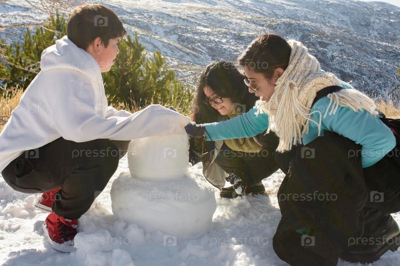Снежные выходки Трогательная латиноамериканская семья строит воспоминания о снеговике в Сьерра-Неваде,