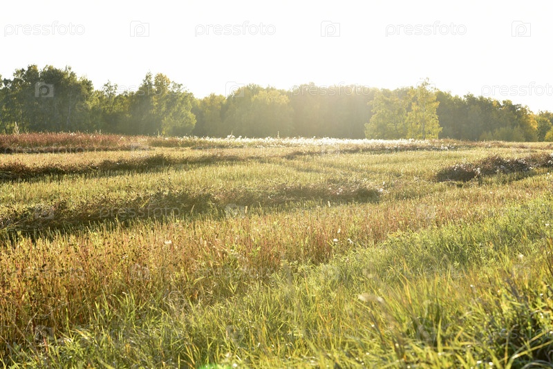 Гречишное поле в солнечный осенний день. Сбор урожая в поле