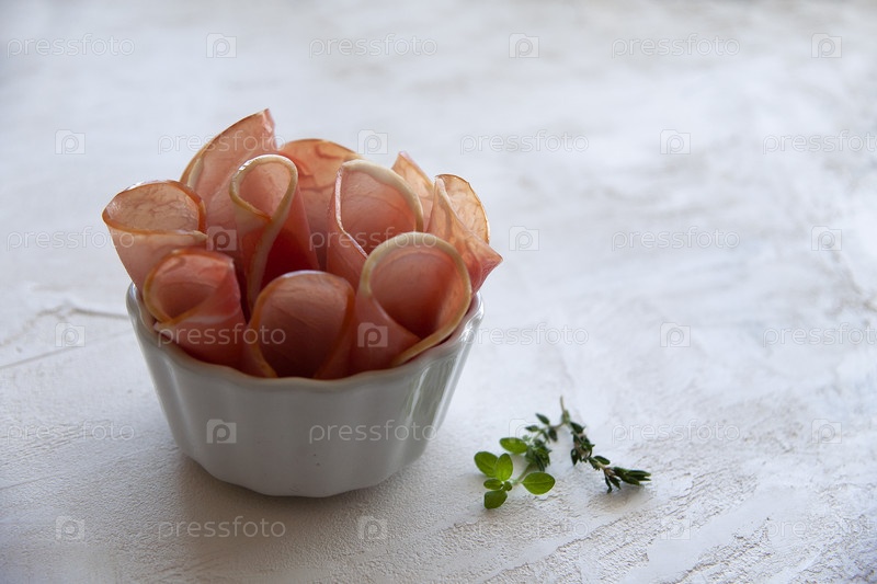Вяленое сушеное мясо в белой тарелке