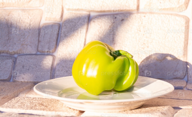 Зелёный большой сладкий перец созрел на даче