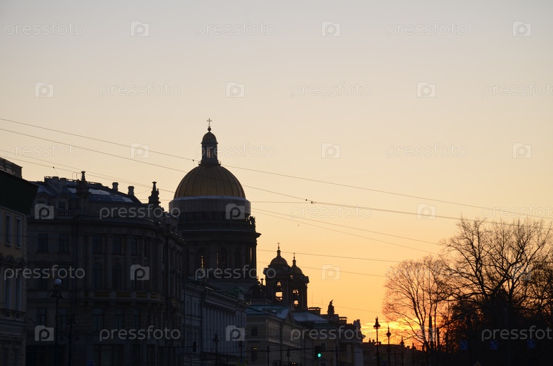Иссакиевский собор в Санкт-Петербурге на фоне красивого закатного ноябрьского неба