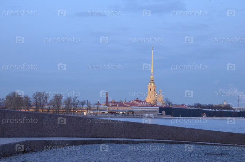 Петропавловская крепость в Санкт-Петербурге на фоне вечернего неба