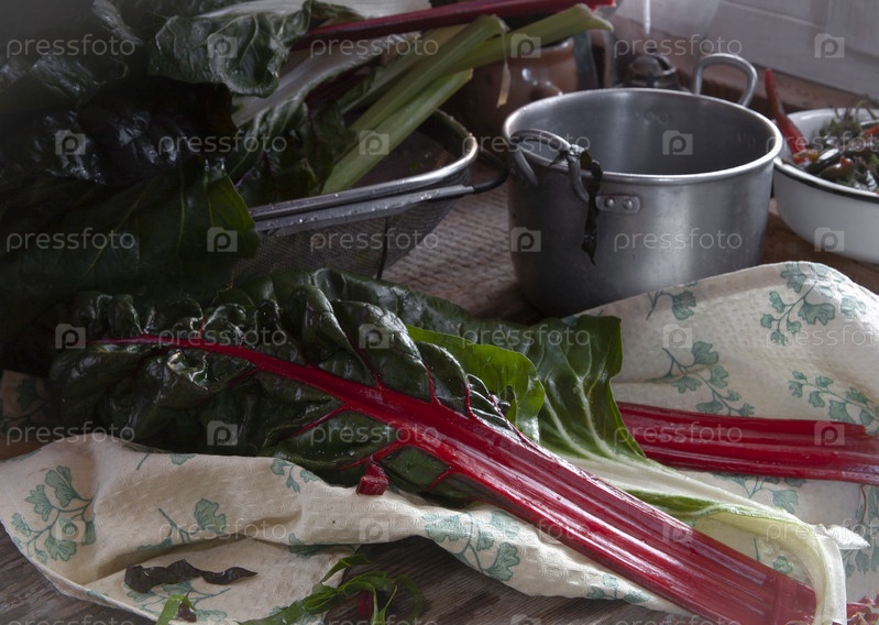 Стебли мангольда готовятся к срезке для хранения в морозильной камере. Концепция замороженных овощей, выборочный фокус