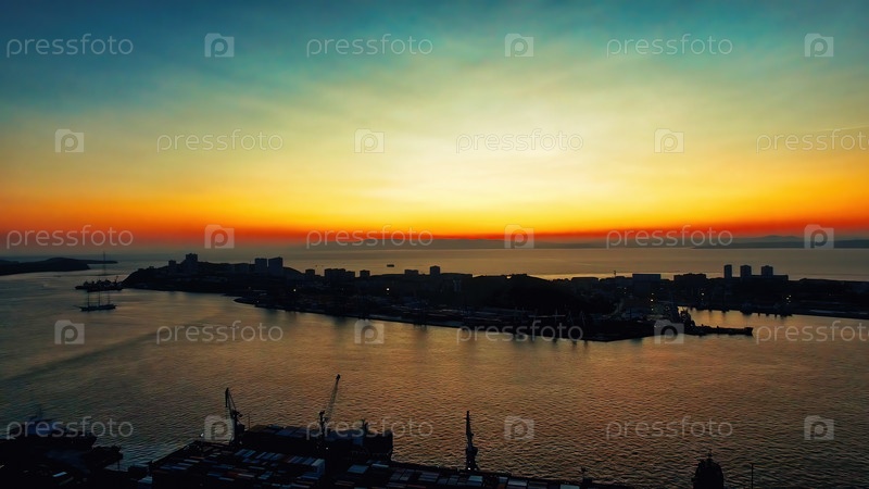 Закат над бухтой Золотой Рог. Владивосток, Россия