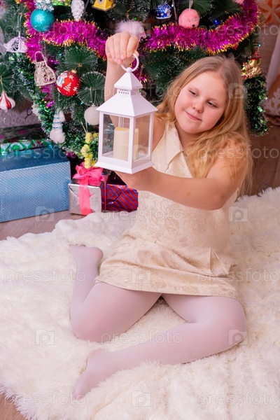 Красивая нарядная девочка возле елки в Новый год. Праздник. Новый год. Ребенок-модель. Красивая элегантная девушка рядом с рождественской ёлкой в Новый год. Отпуск. Новый год. Ребёнок является моделью