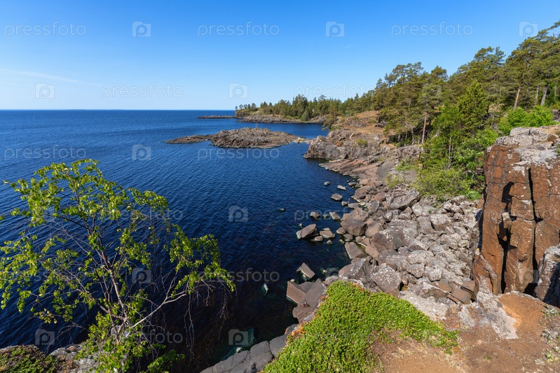 Остров Валаам, скалистое побережье и растущие на нем сосны