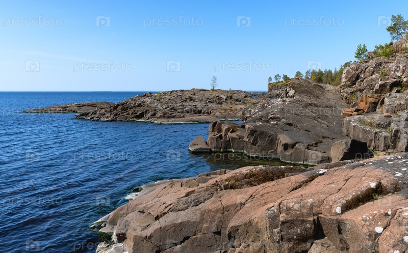 Остров Валаам, прозрачная вода озера, каменистый берег и растущие на нем сосны