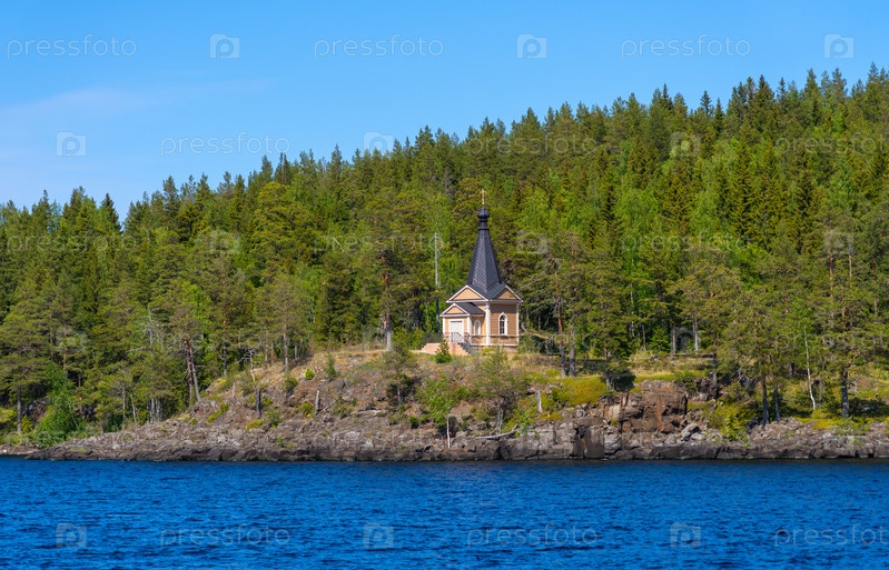 Часовня на скалистом берегу острова Валаам в Ладожском озере