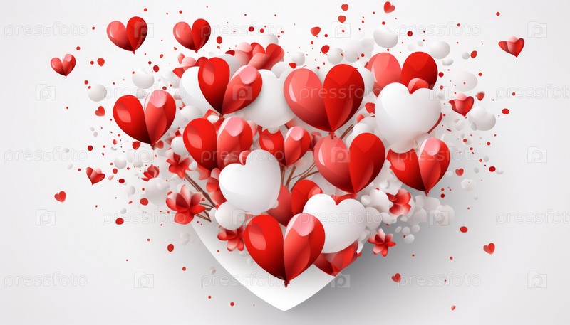 Романтический любовный фон с сердечками и цветущими розами для поздравительной открытки ко Дню Святого Валентина