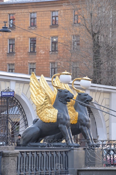 Крылатые львы Банковского моста в Санкт-Петербурге